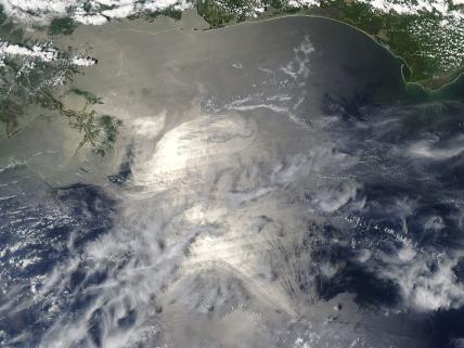 But everyone should watch this video to understand how serious this situation is. Below is the latest photo from a NASA Satellite on May 18. The three areas of sunlight are actually reflections bouncing off the oil slick.