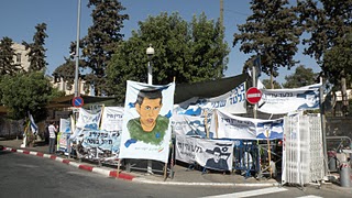 There is a tent to outside the Prime Minister’s house set up by his parents to keep Gilad’s cause alive. Here is a picture: